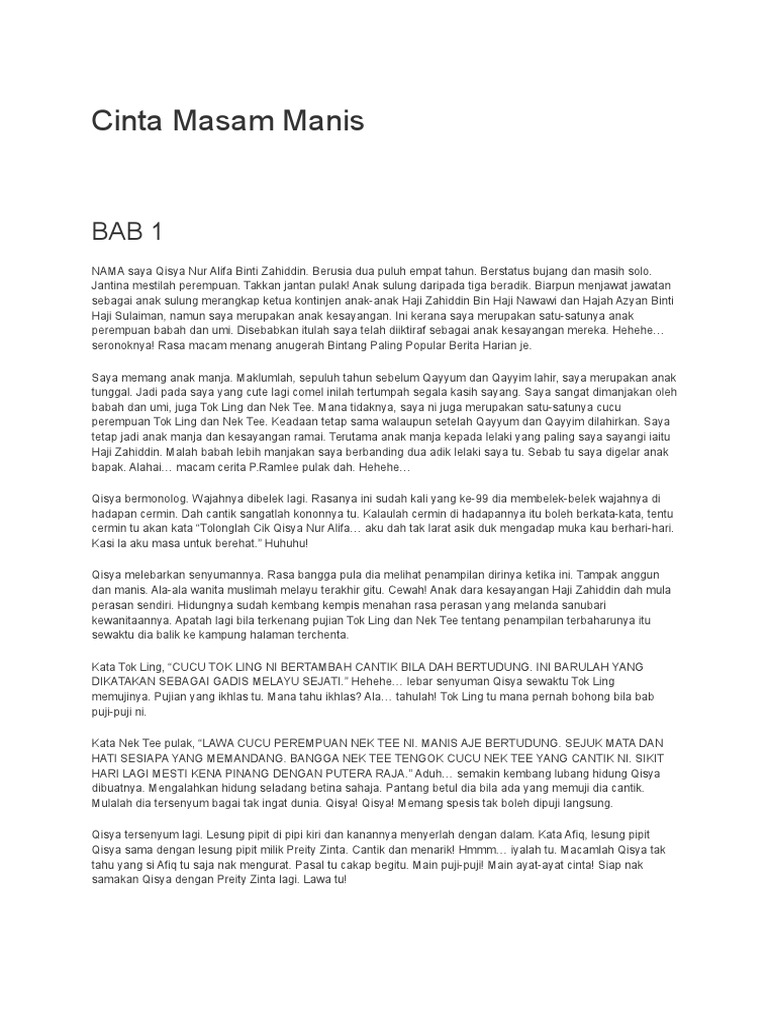 Novel Cinta Masam Manis Docx from imgv2-2-f.scribdassets.com Hanna akhirnya bersetuju menerima zaleha sebagai ibu barunya, walaupun mamanya tidak menyetujuinya. Danish kawan syed aiman dan intan, menaruh minat dan cinta akan intan dalam diam. Download mp3 gratis ▶ masam manis download lagu masam manis dan streaming kumpulan lagu masam manis mp3 cinta masam manis | episod 1 mp3 duration 41:20 size 94.60 mb / tv3malaysia official 3. Shuhadatul ain zakaria pengarah : Alhamdulillah.keputusan bagi anugerah novelis newcomer karnival novel 2013 telah diketahuai.cinta masam manis menduduki tempat ketiga.terima kasih pada yang. Download lagu masam manis cinta (5.8mb) dan streaming kumpulan lagu masam manis cinta (5.8mb) mp3 terbaru di usahakan kalian download sebagai review saja, belilah cd original atau kalian beli secara online seperti di itunes untuk mendukung semua artis agar terus berkarya. Cinta masam manis menceritakan perihal watak utama, qisya dengan tengku danish. Masam masam manis mp3 ✖.